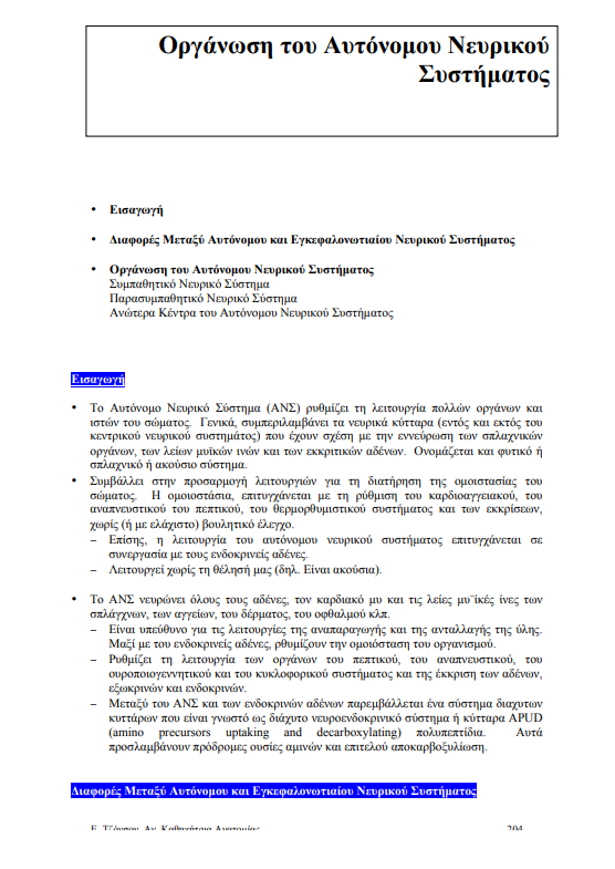 Από τα γραφόμενα “Οργάνωση του Αυτόνομου Νευρικού Συστήματος” της Αν. Καθηγήτριας Ανατομίας – Ε. Τζόνσον