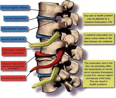 Στη σπονδυλική στήλη παρουσιάζονται ημιεξαρθρήματα (subluxations), μικρές αλλαγές θέσεων ενός, δυο ή περισσοτέρων σπονδύλων (δηλαδή ημιεκτόπιση ή πίεση στα μεσοσπονδύλια νεύρα που προκαλούν ενόχληση ή ερεθισμό, δυσλειτουργία της σπονδυλικής άρθρωσης, κακή ευθυγράμμιση ή βλάβη) πολλές φορές μετά από κάποια απότομη, βίαιη κίνηση.
